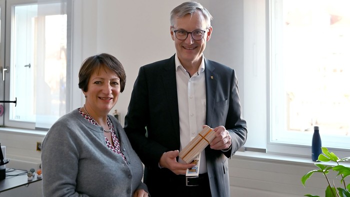 Der Bürgermeister signalisierte die gute Tradition seines Vorgängers fortsetzen zu wollen und ein verlässlicher Partner für den Ev. Kirchenkreis zu sein. Als Gastgeschenk hatte die Superintendentin ein modernes Lichtkreuz mitgebracht, dass sogleich einen schönen Platz auf der Fensterbank im Büro des Bürgermeisters bekam.