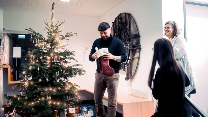 Recklinghausen - Die von der Kulturgruppe wunderschön gestaltete Weihnachtsfeier für die Mitarbeitenden fand in diesem Jahr im Haus des Kirchenkreises statt. Zu Beginn gab es einen festlichen Gottesdienst in der Christuskirche mit Superintendentin Saskia Karpenstein, Superintendent Steffen Riesenberg und dem MAV-Vorsitzenden Felix Zidek. Kreiskantorin Elke Cernysev sorgte mit Weihnachtsliedern wie „Jingle Bells“, „Feliz Navidad“ oder „We wish you a merry Christmas” für die musikalische Begleitung. Im Anschluss daran ging es für die rund 60 Beschäftigten in den großen Saal zum gemütlichen Beisammensein mit sehr leckerem Essen und Getränken. Für besondere Heiterkeit sorgten die "Foto-Ecke" mit weihnachtlichen Accessoires und einer Sofortbildkamera sowie die freiwillige Zweite-Chance-Wichtelaktion, für die sich fast 30 Kolleginnen und Kollegen angemeldet hatten.