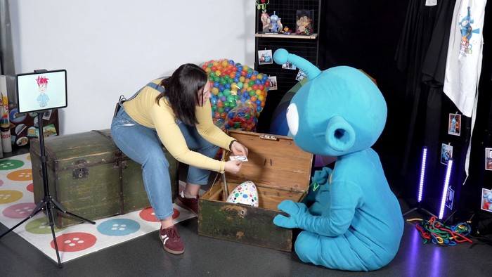 Foto: Auf der Suche nach spannenden Glaubens-Sachen: Logodor & Melissa kramen in Melissas Kirchenkiste.