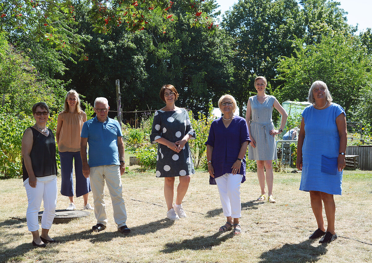 Foto (Jörg Eilts):Die Mitwirkenden des Kreativmeetings: (v.l.) Pfarrerin Ilona Klaus, Julia Borries (Erwachsenenbildung Ev. Kirchenkreis), Gerrit Heetdekrs, Maike Siebold, Hannelore Klippel (Kreissynodalvorstand), Britta Scheckenreuter, Dr. Ulrike Preuß (Kreissynodalvorstand).-