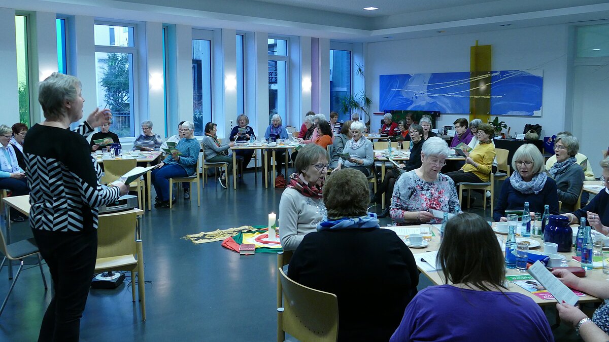 In kurzen Filmsequenzen erhielten die Teilnehmerinnen im weiteren Verlauf des Nachmittags, einen Einblick in die Arbeit zivilgesellschaftlicher und kirchlicher Projektarbeit, die der Weltgebetstag in diesem Jahr mit seinen Kollekten unterstützt. Die wesentlichen Elemente der Gottesdienst-Ordnung, stellte das ökumenische Vorbereitungsteam in Form von Aktualisierungen und Anspielen vor und motivierte die Teilnehmerinnen, diese Impulse aufzugreifen und in ihren Gottesdiensten am 6. März umzusetzen. Kreiskantorin Elke Cernysev verstand es wieder durch die besondere Art der Vermittlung der Lieder der Gottesdienstordnung, die Teilnehmerinnen zu motivieren, das Liedgut schnell und mit Freude zu lernen. Die Teilnehmerinnen zeigten sich zufrieden mit den vielen Informationen und Anregungen und fühlten sich gut vorbereitet für die Durchführung des Weltgebetstagsgottesdienstes in ihren Gemeinden